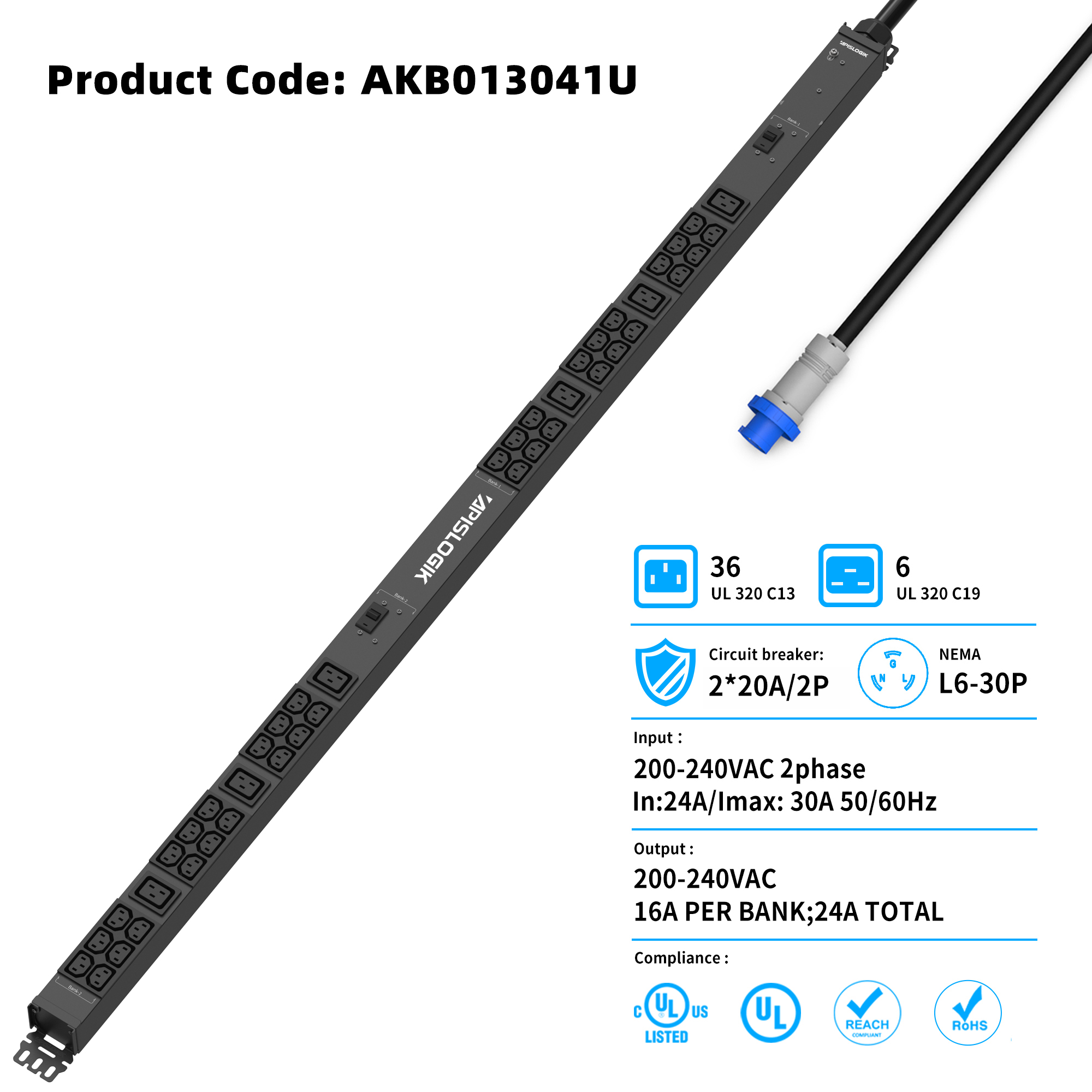 | Full Description | BASIC RACK PDU - 208V - 2ph+G - 30A - C13(36) C19(6) |
