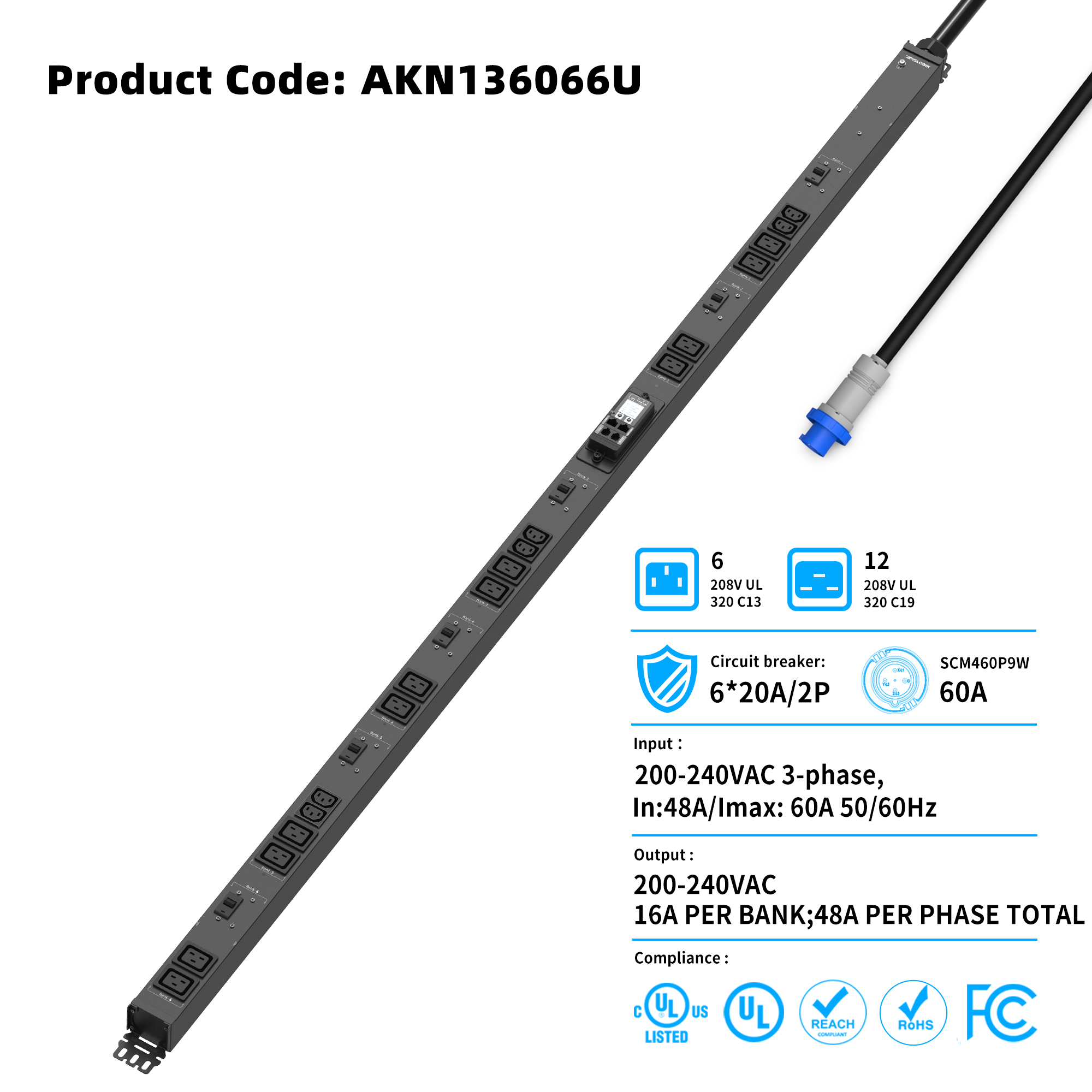 BASIC RACK PDU - 208V - 3ph+G - 60A - C13(6) C19(12)